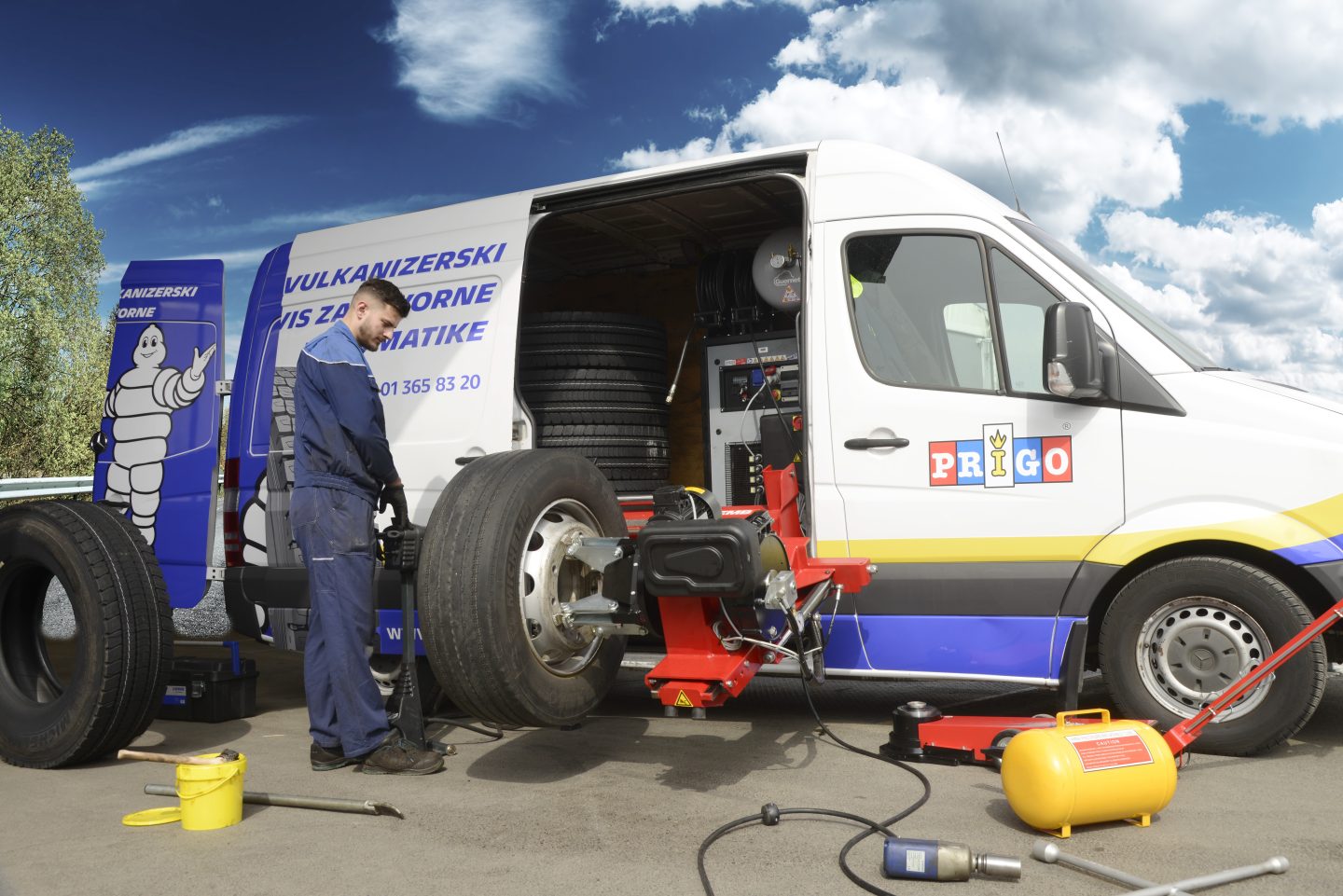 SERVIS TOVORNIH PNEVMATIK NA VAŠI LOKACIJI: Premiki tovornjakov za menjavo pnevmatik oziroma za ostale vulkanizerske storitve vas stanejo goriva, dela in časa voznikov ter številnih drugih skritih stroškov. S Prigo ponudbo mobilnih vulkanizerskih storitev ni potrebno premikati vašega voznega parka. Vse kar morate storiti je, da nas pokličite na 01/365-83-20 in se dogovorite za termin in lokacijo opravljanja vulkanizerskih storitev.