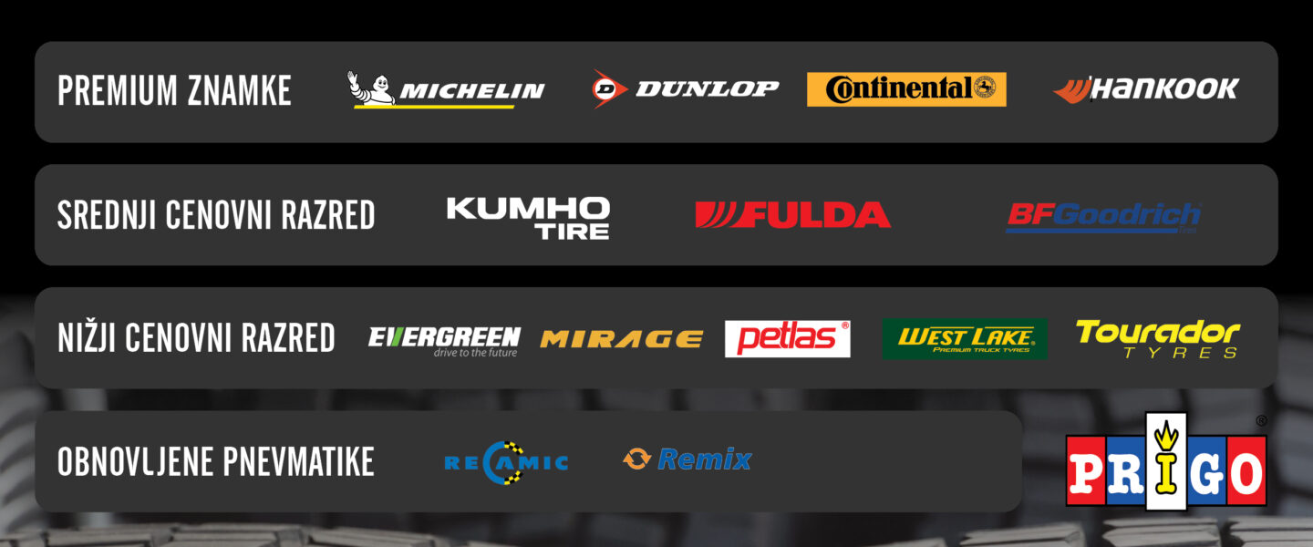 - prodajo novih in obnovljenih pnevmatik različnih proizvajalcev,
